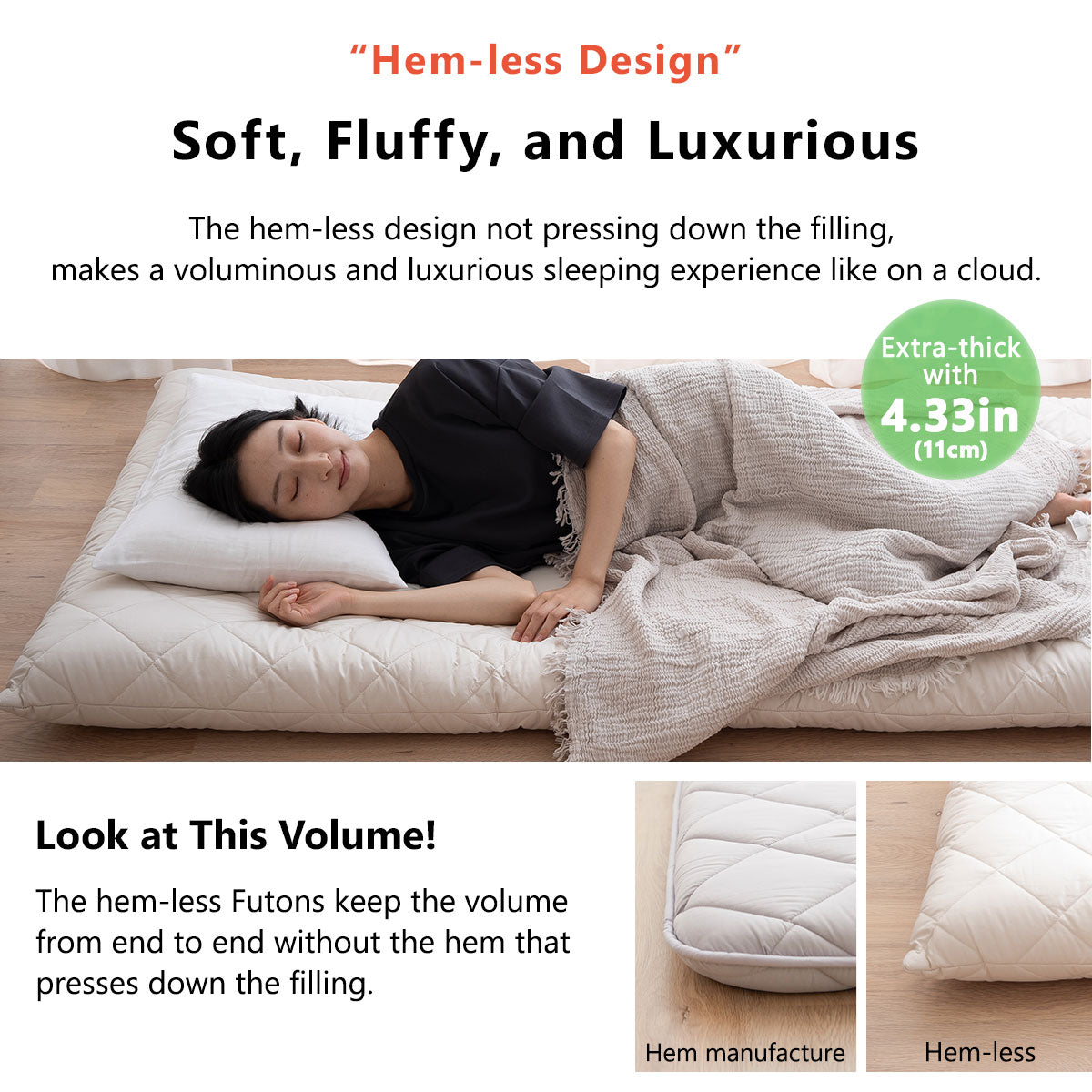 EMOOR Extra-Dicke Japanische Futonmatratze Saumlos