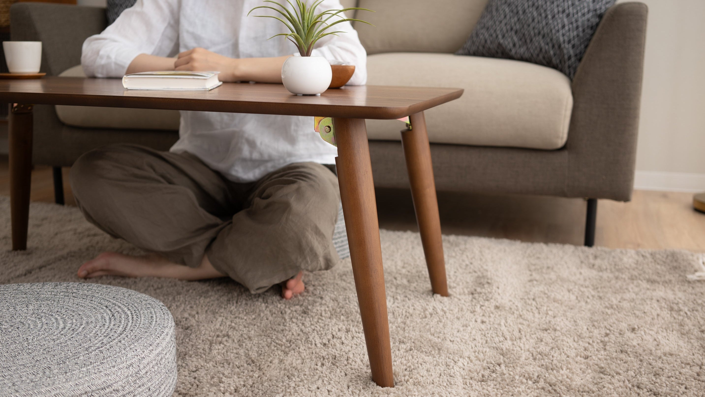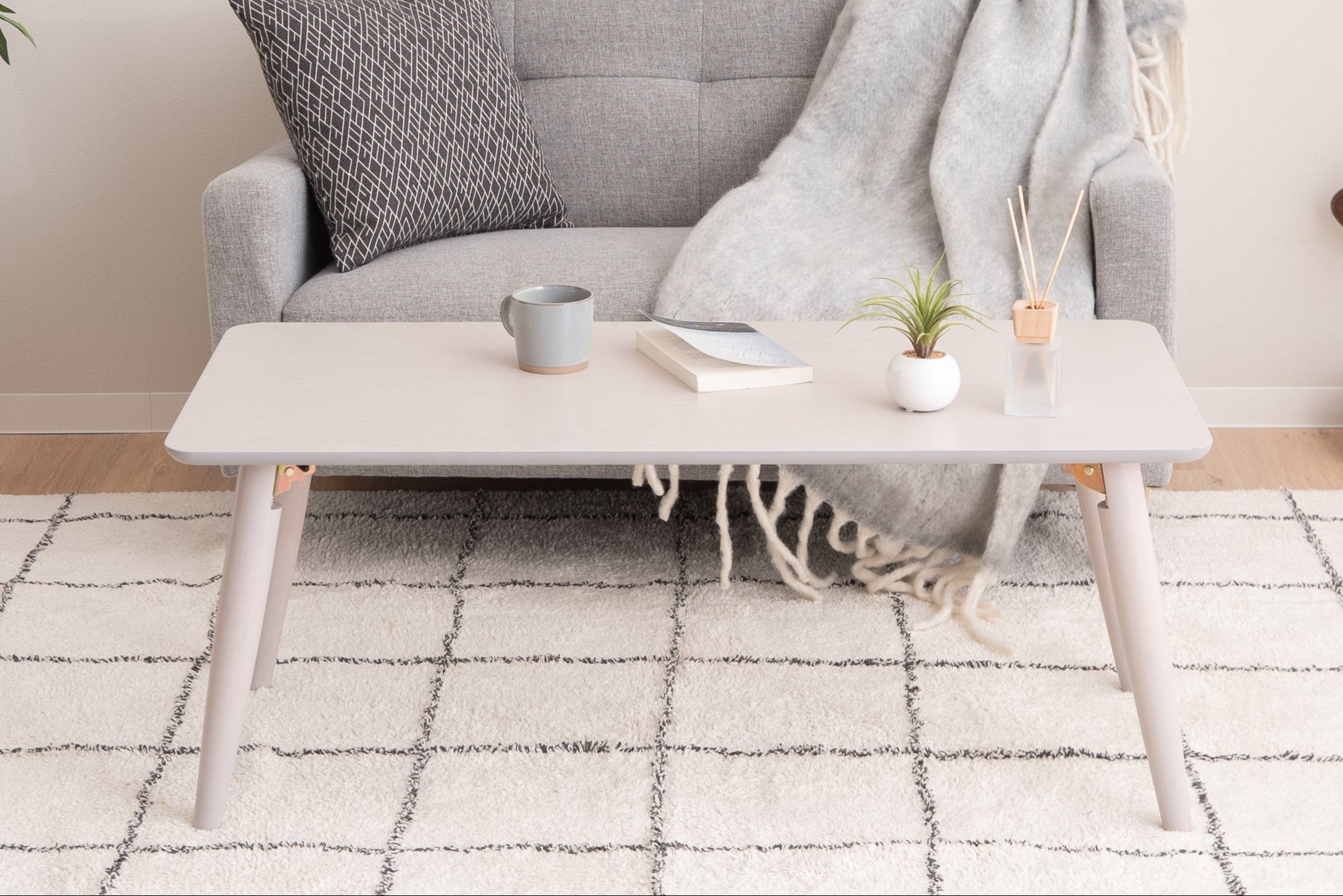Perfekte Größe für kleine Räume oder ein minimalistisches Leben. Die Beine lassen sich einfach zusammenklappen, um sie bei Nichtgebrauch aufzubewahren oder beim Camping im Auto mitzunehmen.
