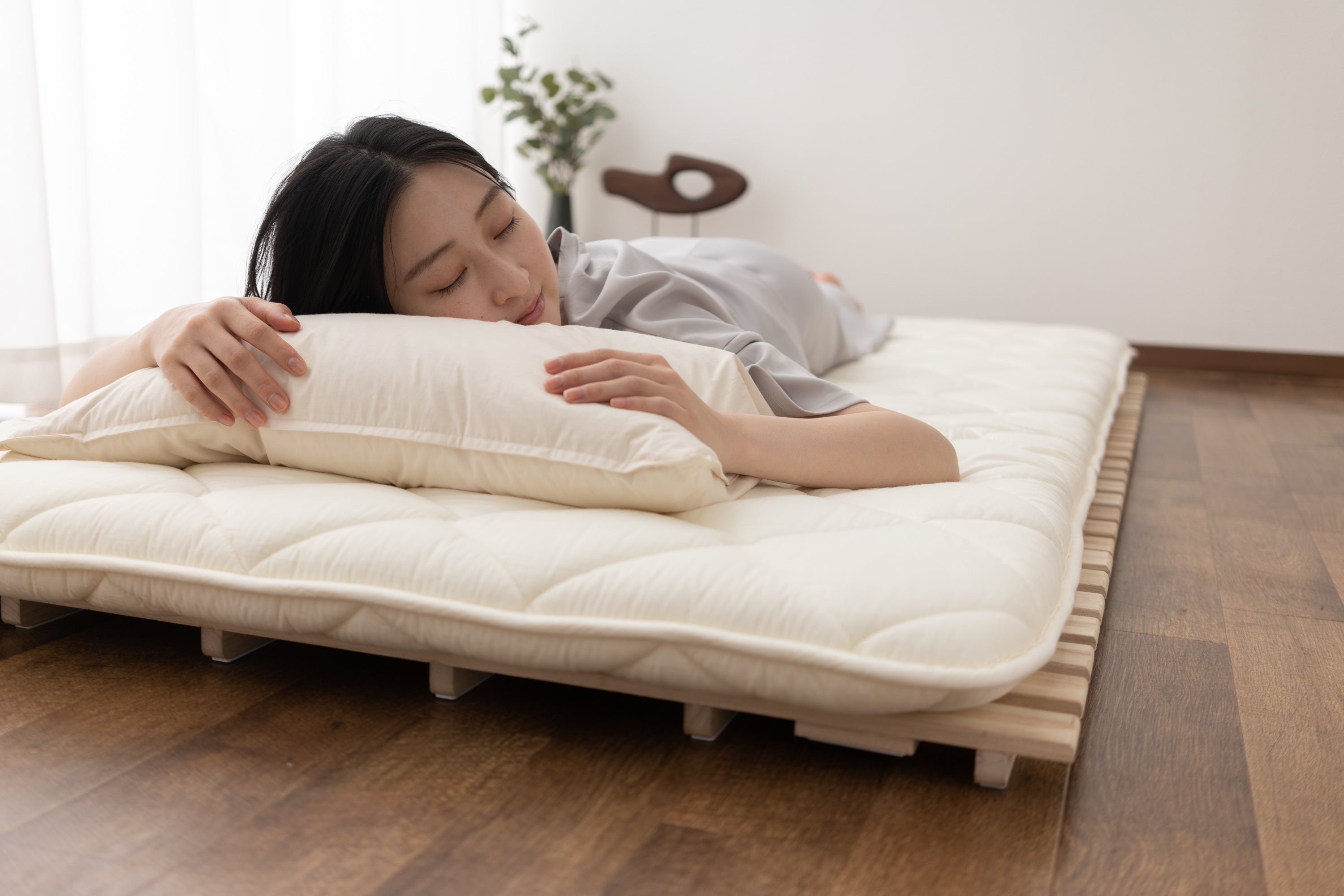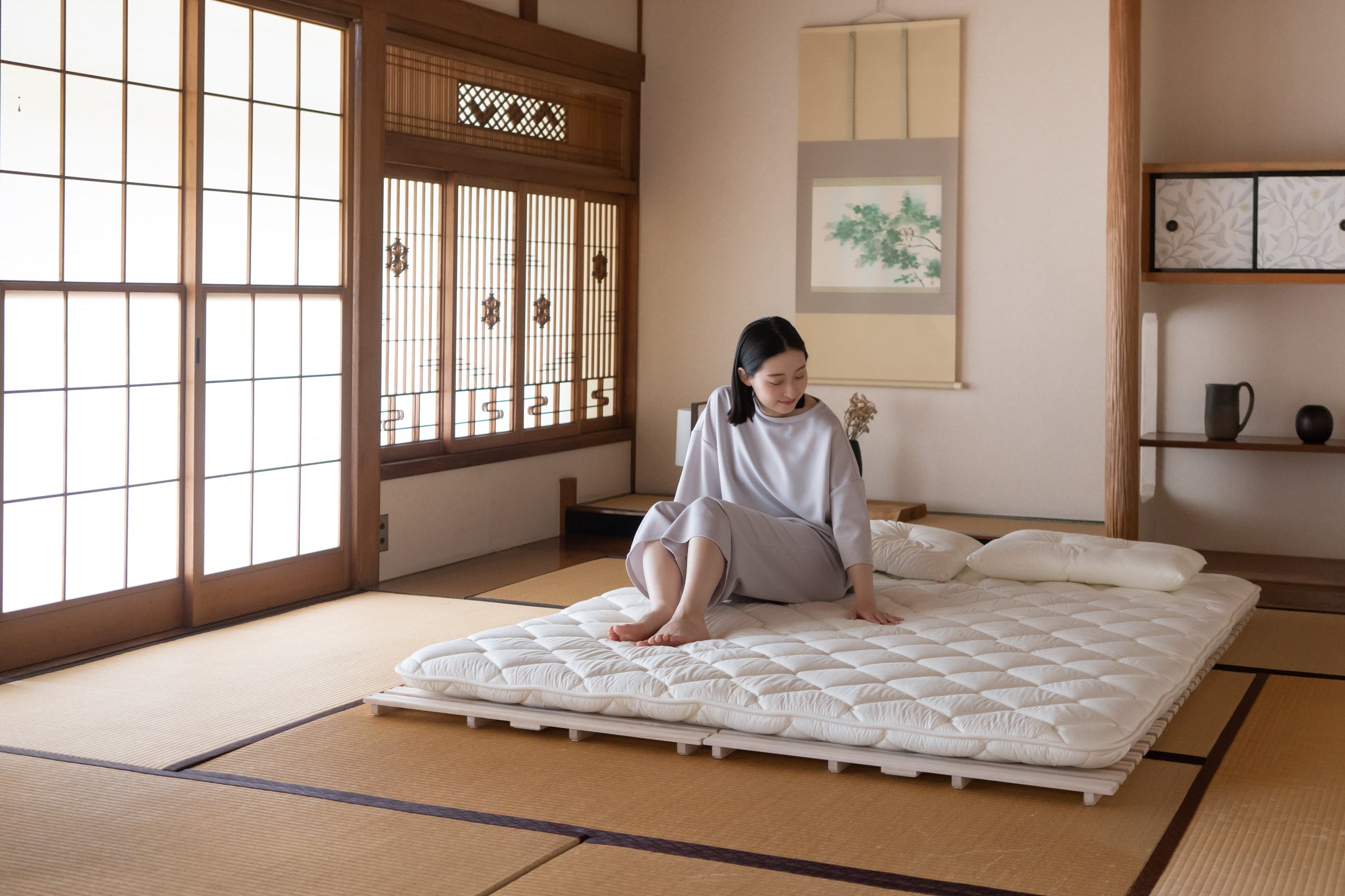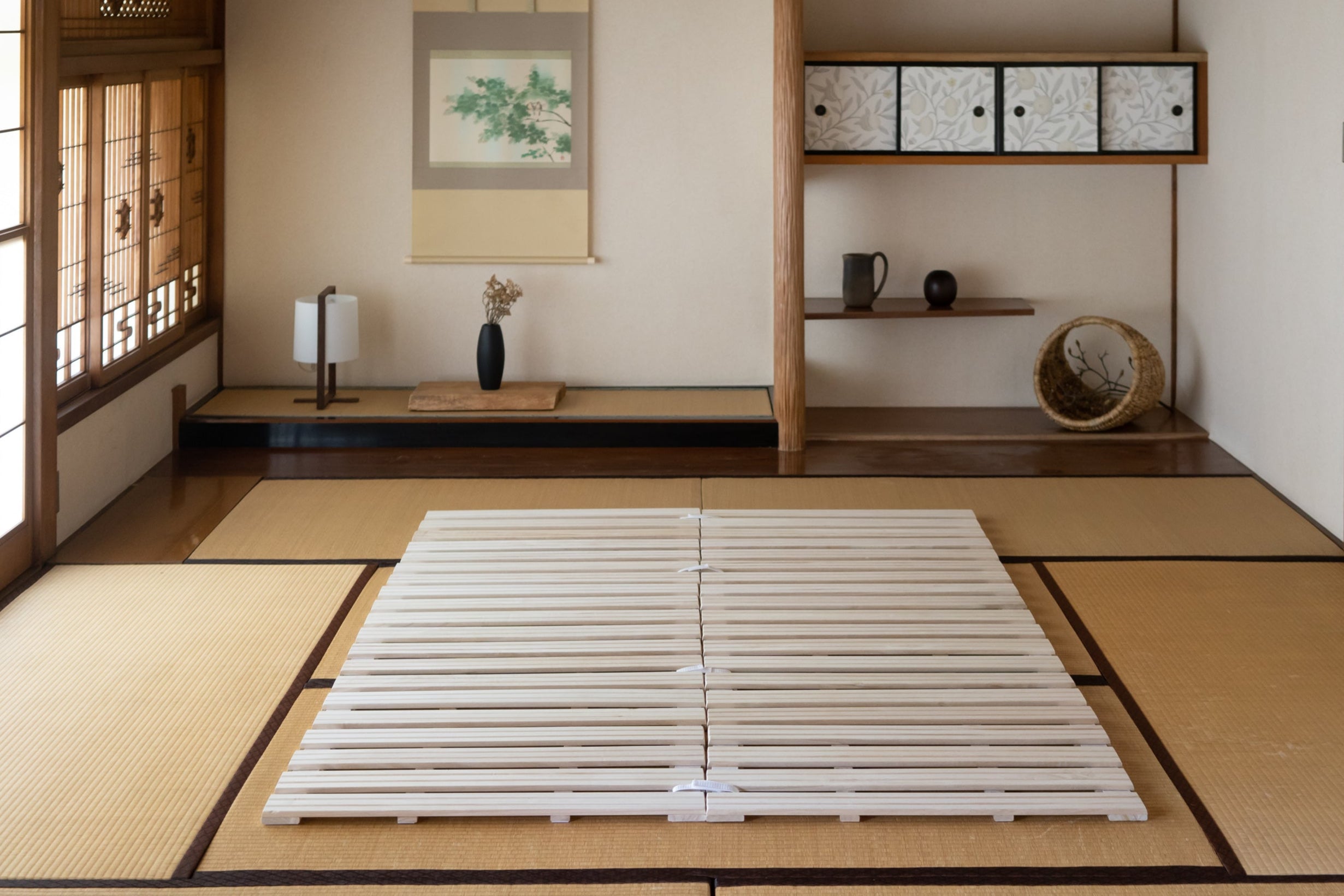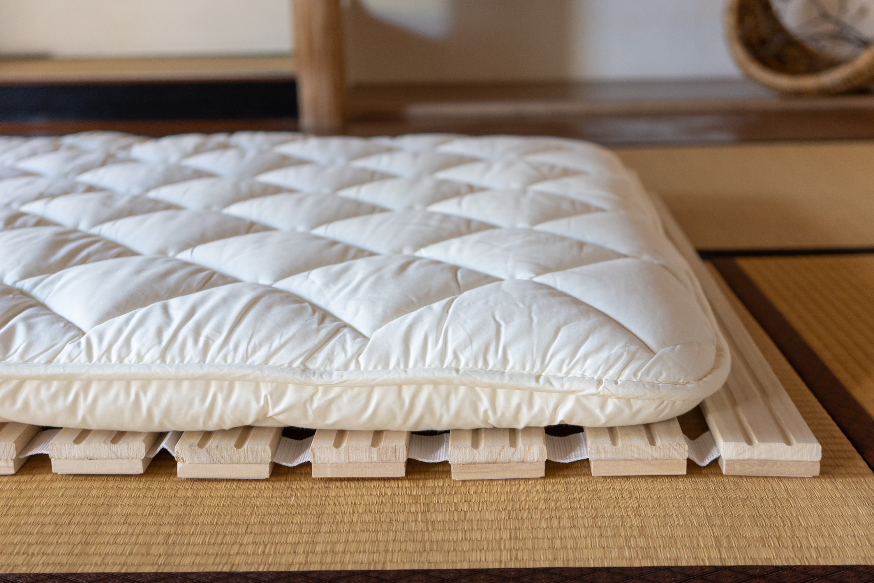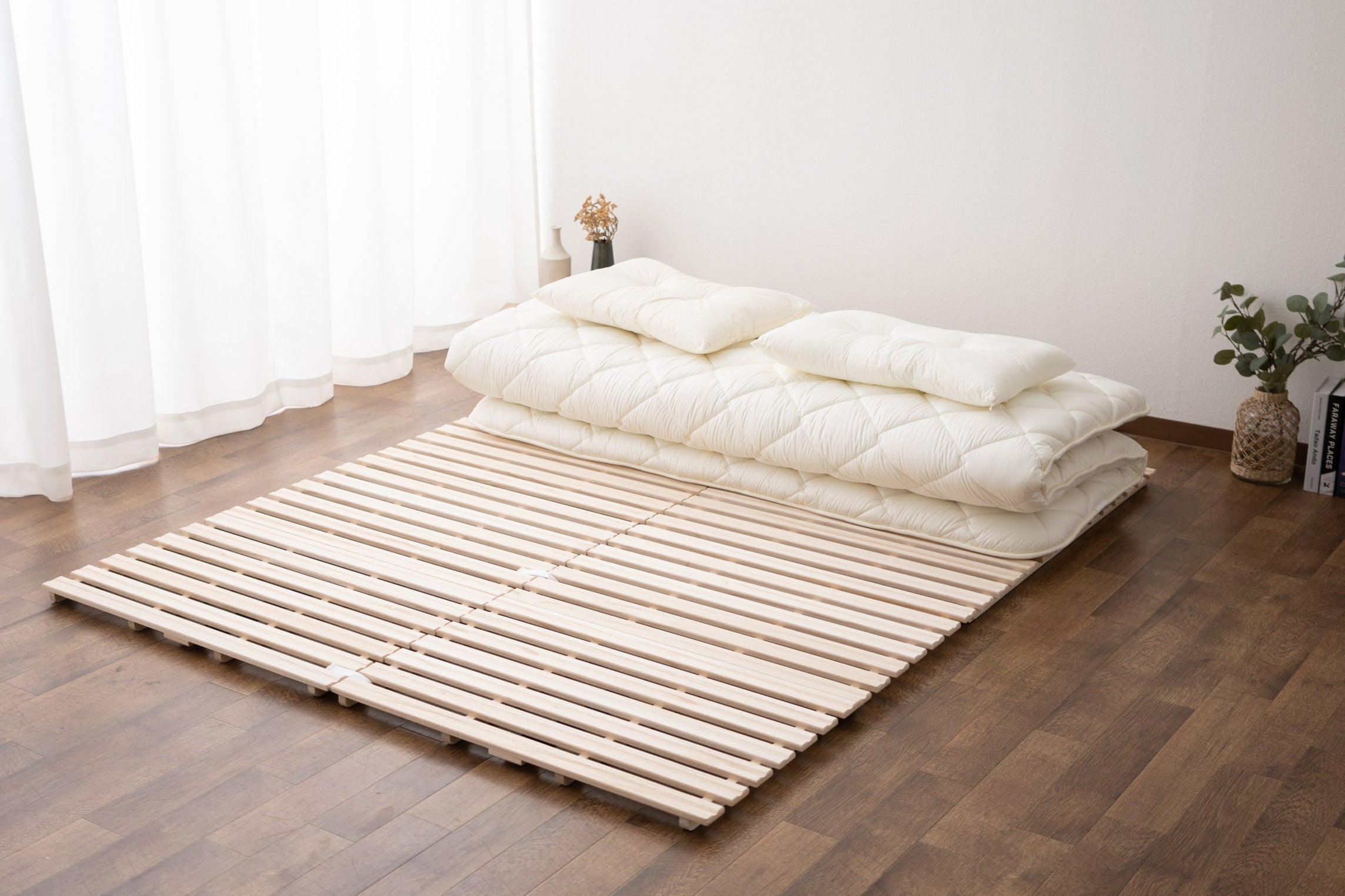 Japanische Futon-Aufbauten benötigen keine Bettplattform. Wenn Sie sich jedoch beim Schlafen direkt auf dem Boden unwohl fühlen, ist dies die perfekte Wahl für Sie.