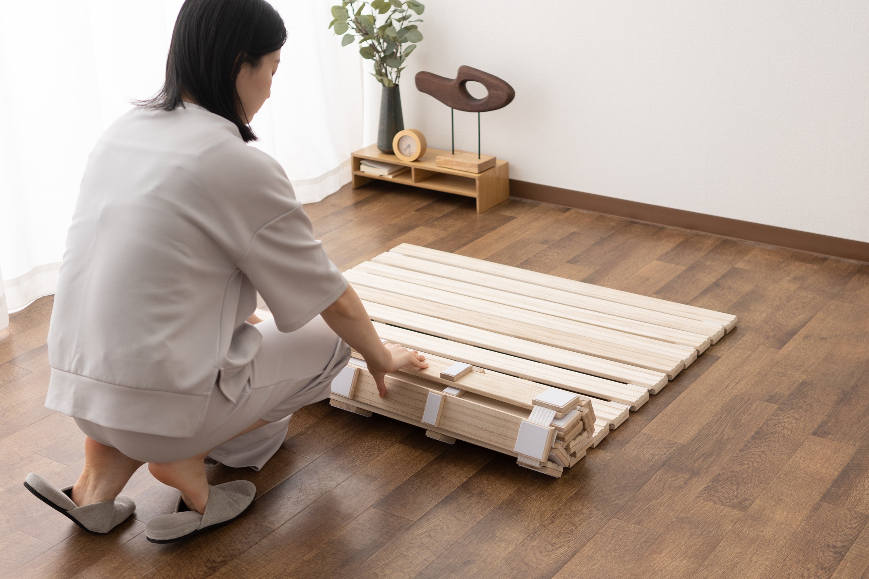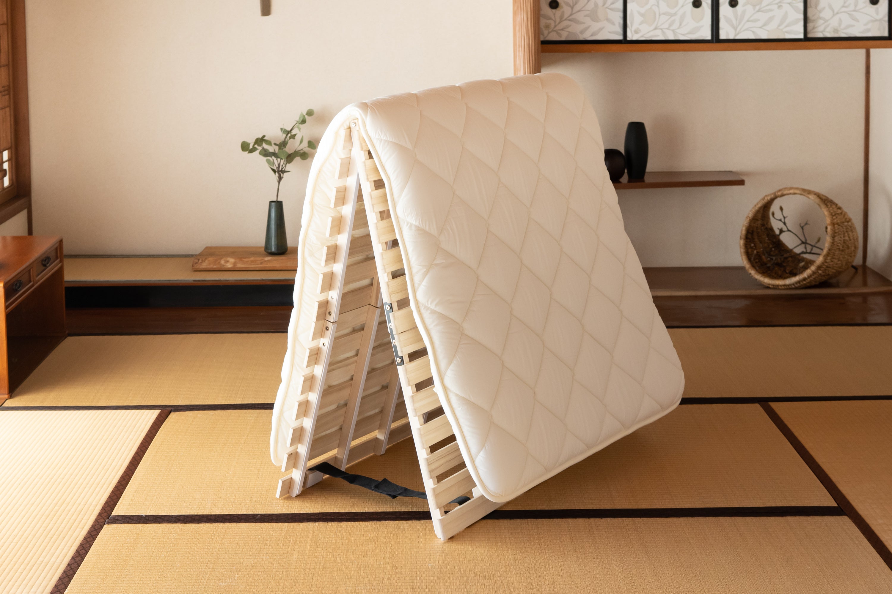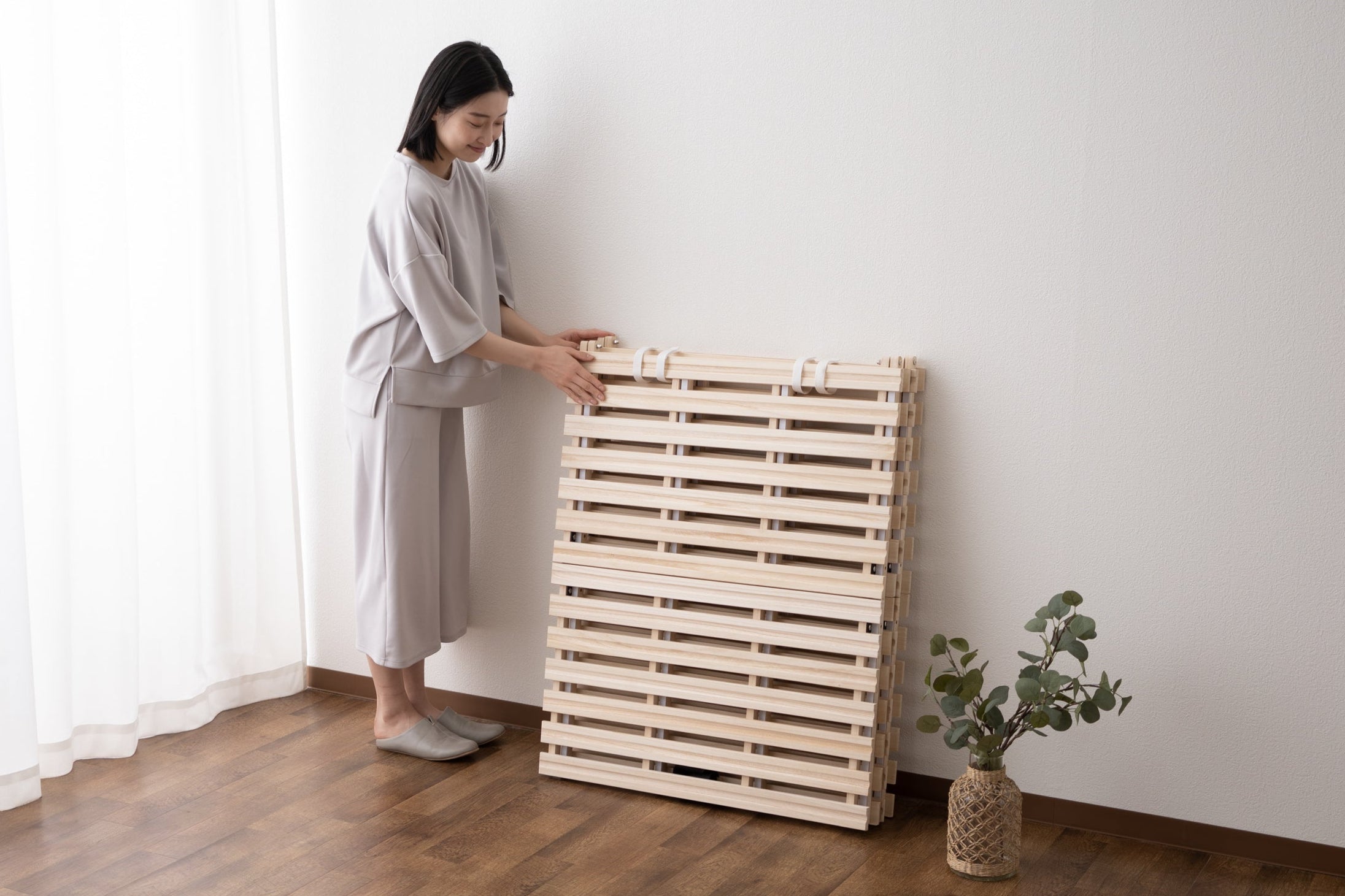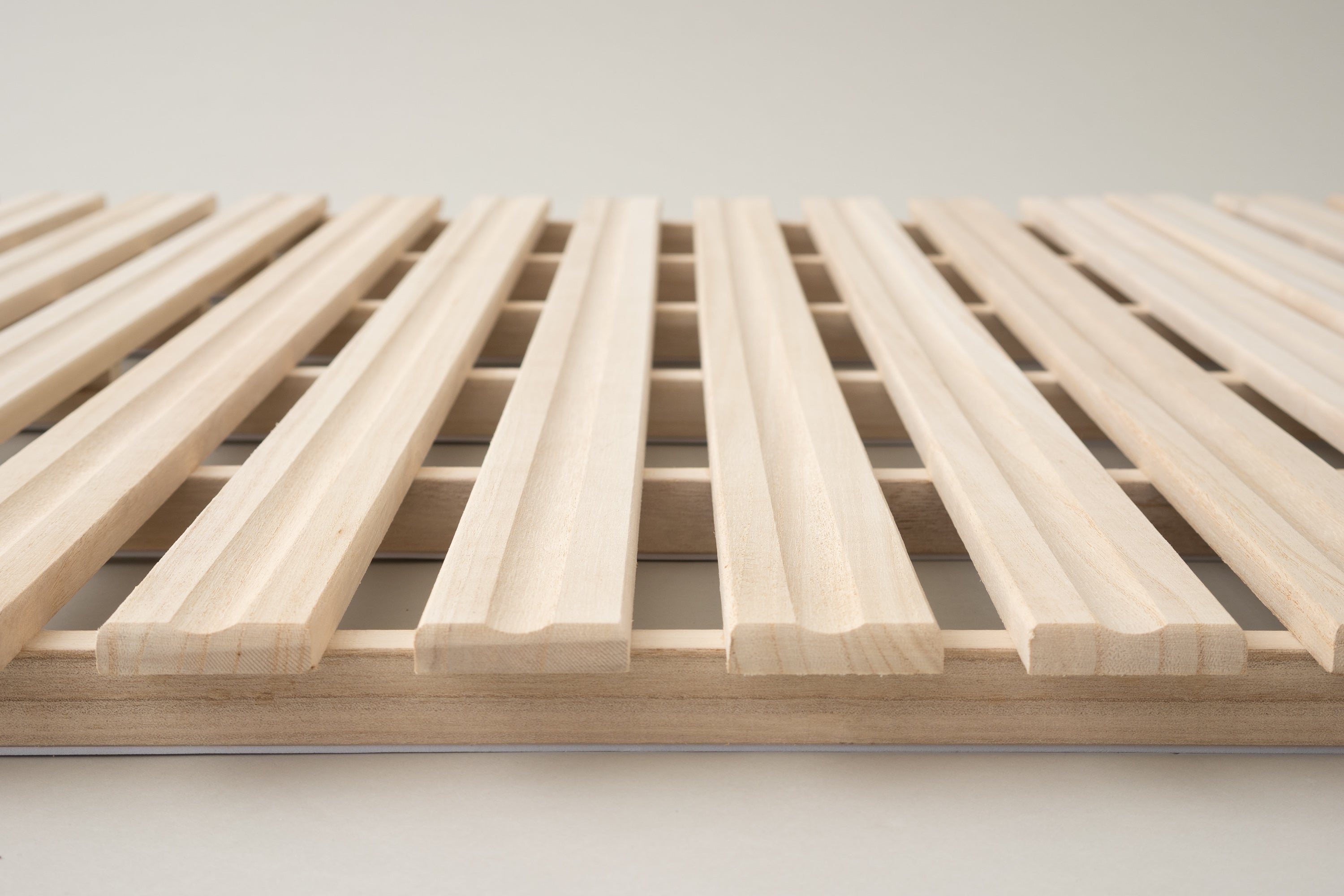 Es ist wichtig, Ihren Futon zu halten. Der Abstand zwischen den Latten sorgt für eine gute Belüftung Ihrer Bettwäsche und Futonmatratze. Das Design der Lattenroste und die schön verarbeitete Delle sorgen dafür, dass Sie viel bequemer und sauberer schlafen.