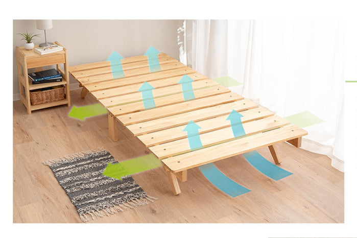 People sweat while they sleep, making beds damp. A breathable slatted frame keeps your bed dry and clean. The air channels in the slatted frame bed wick away sweat and moisture while you sleep.
