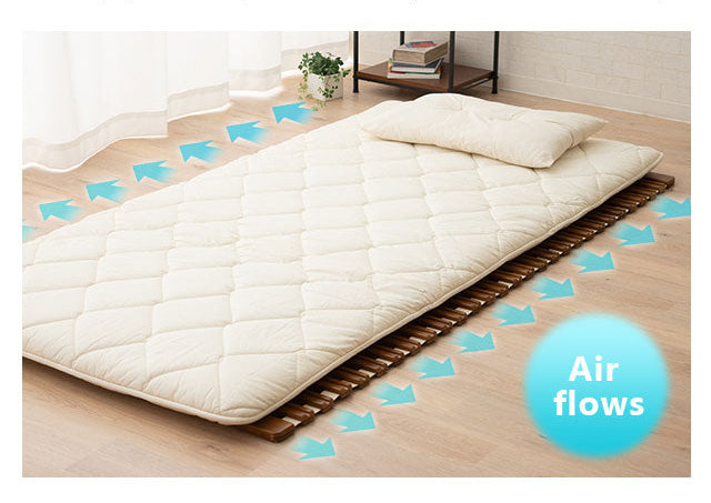The straps between the slats are durable and firmly connected to each other. The maximum weight is 440 pounds (200 kg). You can place it under the mattress or Japanese futon mattress. In addition, cushions on the back of each slat prevent it from being scratched and scratching the floor when placed on the floor.